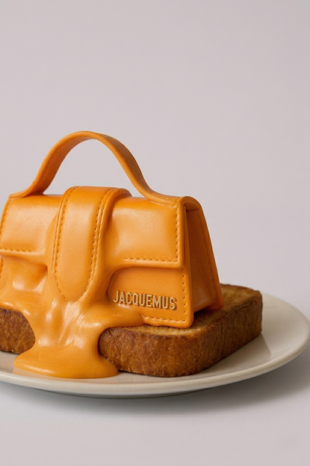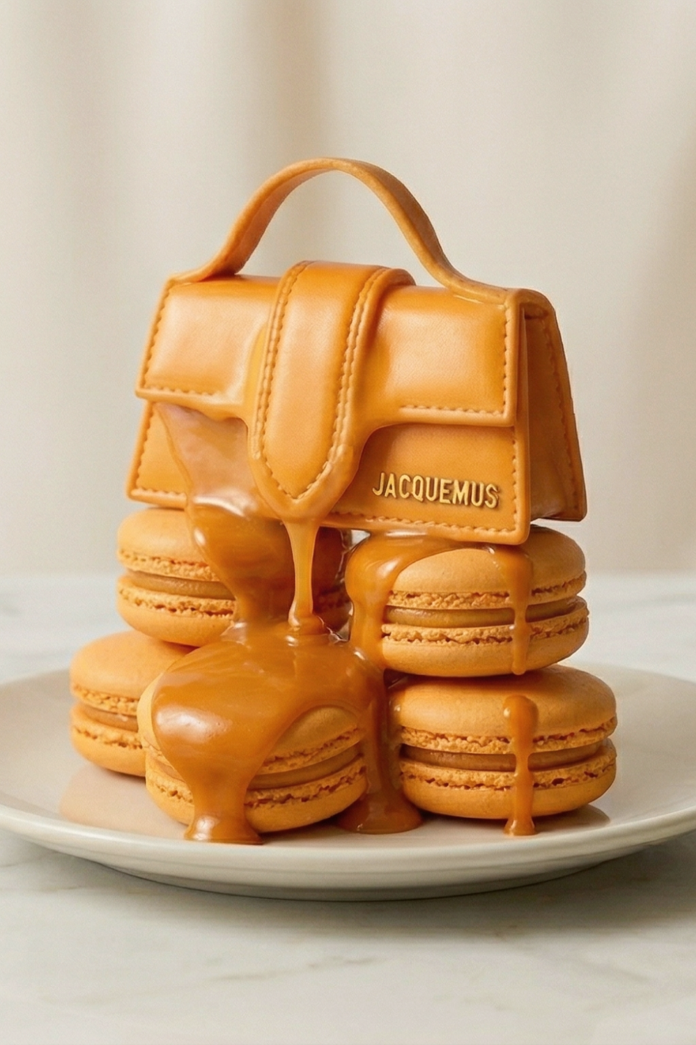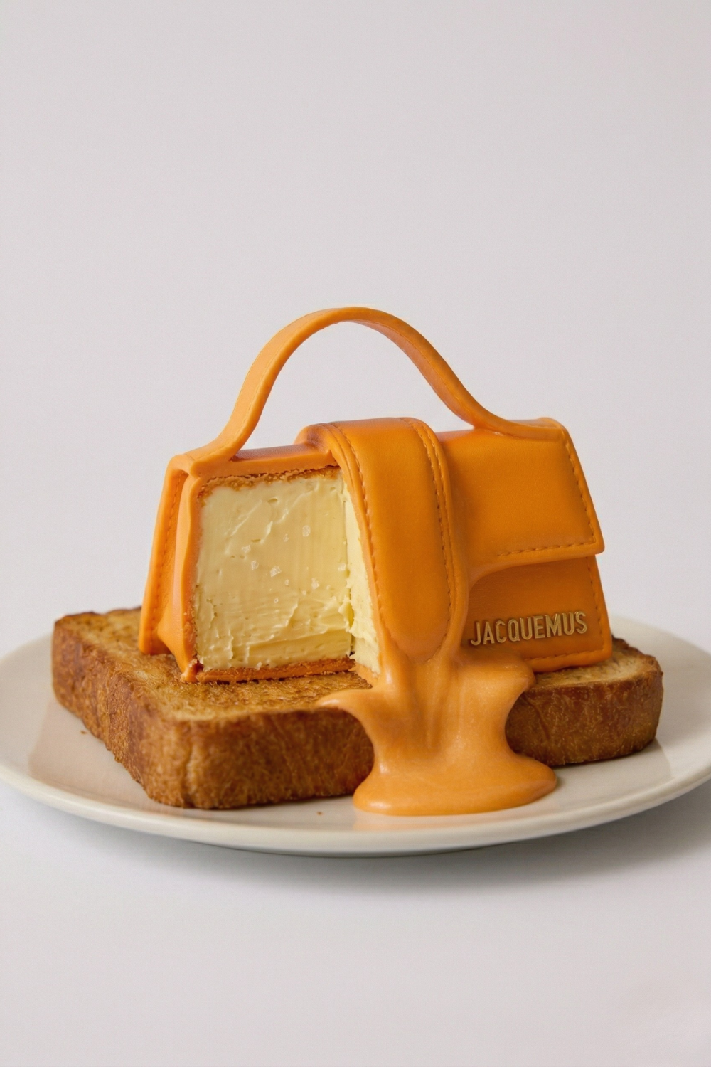 The product as material. When a fashion object dissolves into food, the brand becomes texture, temperature, appetite.